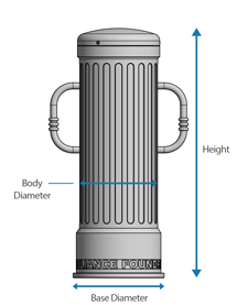 - 直径:12英寸(30.5厘米)的体;14 in(35.6厘米)基地